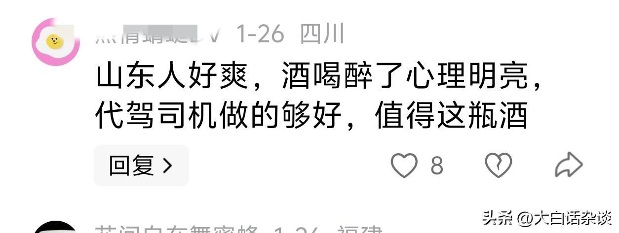 有不少网友表示,山东人虽然爱喝酒,但也是真性情,车主的举动把好客山东体现的淋漓尽致。